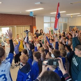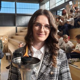 En la maña tambien conocimos a algunos estudiantes locales del colegio de La Paz, Marcelino H. Blanco, y corrimos junto a ellos hacia nuestra primera ceremonia en su colegio. El colegio nos recbio con gran entusiamso y estaban ansiosos por saber sobre la Carrera Por La Paz. Al final de la ceremonia ellos tambien nos hicieron presentaciones y se tomaron muchas selfies con los miembros del equipo. Tambien durante la presentacion nosotros honramos al Director del colegio, Jorge Negri, con nuestra medalla "Torch-Bearer" (portador de la antorcha) por su desinteresado servicio a la comunidad. Luego corrimos al proximo colegio, Ferrocarriles Argentinos, para nuestra siguiente ceremonia. Fuimos recibidos con el mismo entusiasmo como en el colegio anterior. La Directora del colegio, Adriana Araya, recibio el Certificado de Apreciacion en nombre del colegio, tambien vimos la oportunidad de entregar el premio de "Torch-Bearer" a Diego y a Emmanuel.