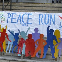 Catherine Mills receives our Torch Bearer Award for her decades of dedicated work in the field of education. She is also the Founder and Principal of the Martello School, founded in 1987, which is the same year the Peace Run was founded by Sri Chinmoy. She is greatly respected and loved by the children and staff here. We are also very grateful to her for inviting us here to share our program with the children and teachers.