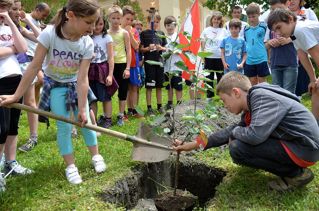 The children and the mayor planted together with us a peace tree.