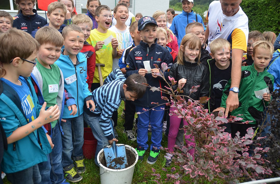 ...all the kids joined us for a short run to their school...