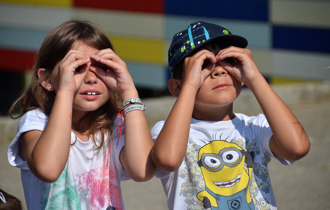 Children from the Kindergarten and the primary school Reifnitz lined up for "High Five"...