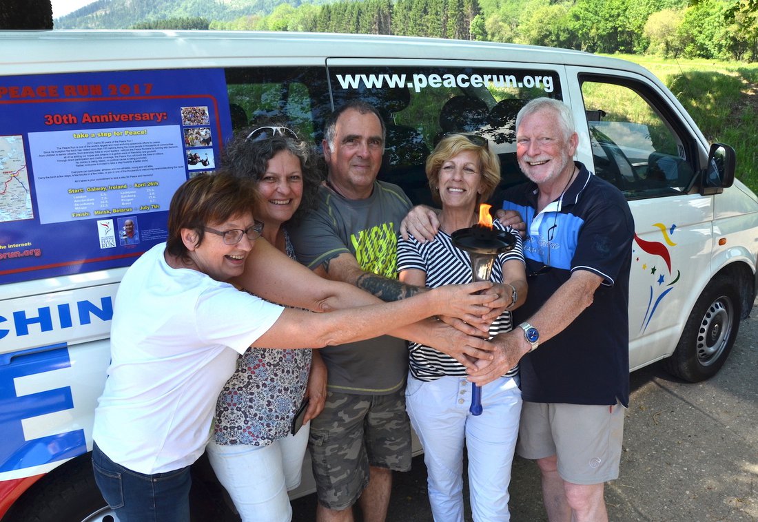 Welcome to Austria! The flaming torch arrived from Slovenia and brave runners from both countries carried the torch up to the "Seebergsattel" mountain pass.