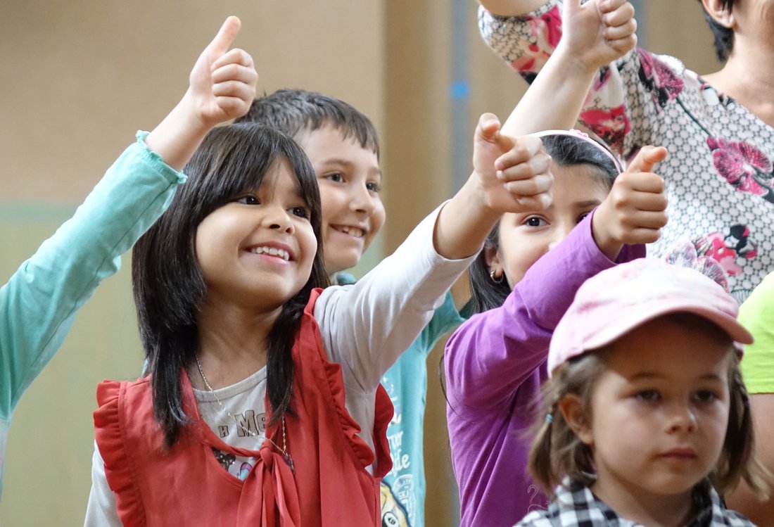 ...the children from the primary school and the kindergarten gathered in the sport hall...