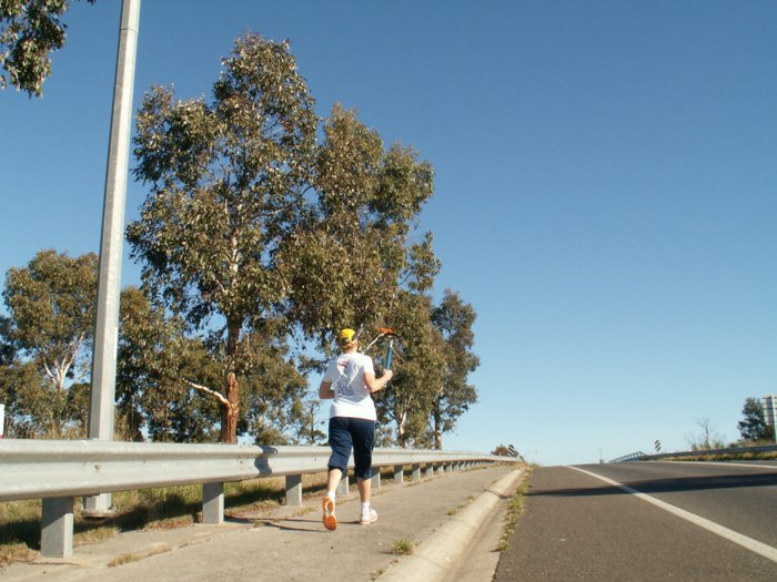 Shortly after a policeman stopped us while the van was pulled over on the side of the road. He asked us if we were waiting for the runner with a torch he had just noticed behind us. When we said yes, he added that she would not be coming and we seriously thought there was a problem. Luckily this policeman was a joker because he added that she was sitting under the tree and having a beer! Yes, Australians have a sense of humour :)