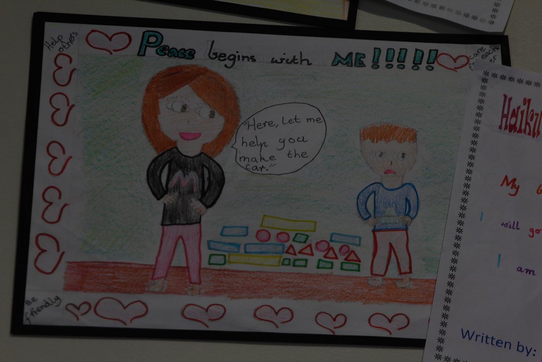 As we entered the hall we saw all the artwork and poetry the students had created for the Peace Run ...