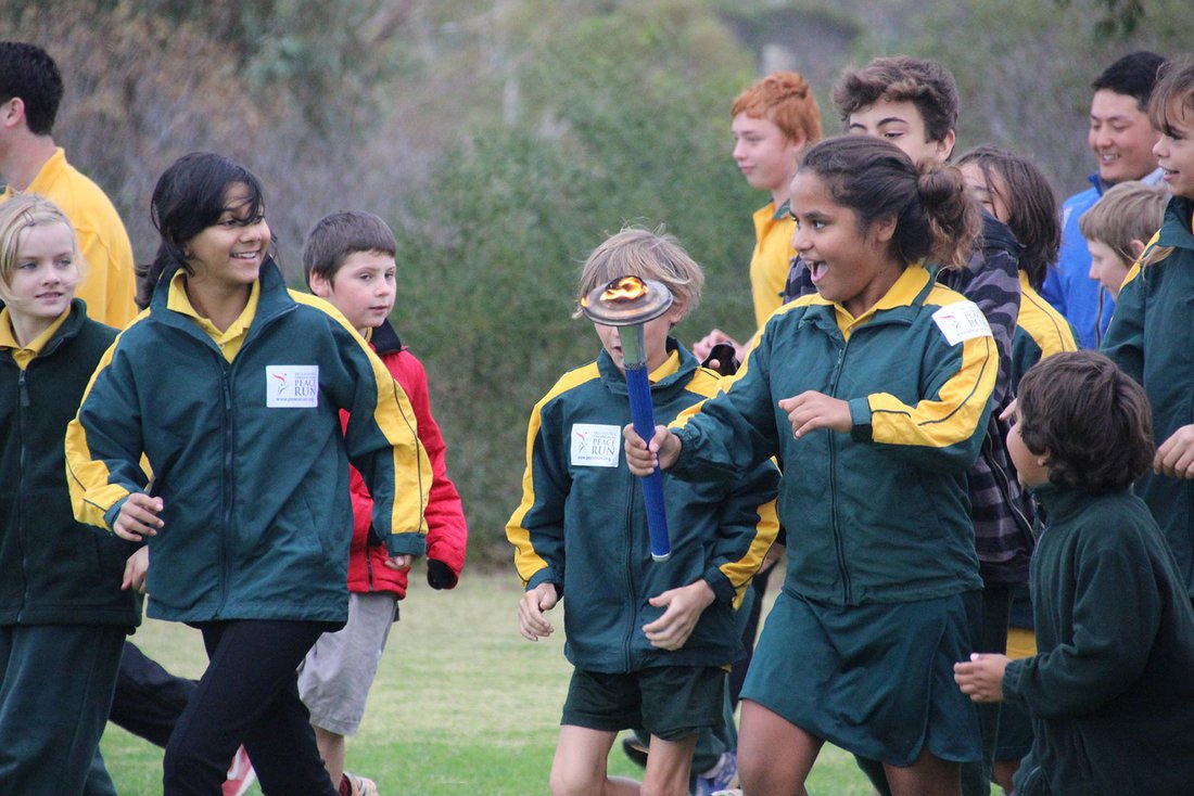 ... we were welcomed by Deputy Principal Murray Gardiner and introduced to the 300 attentive students in their covered assembly area. Udayachal made his debut as lead singer and taught the children the World Harmony Run song. He did not look as nervous as he claimed to be later ...