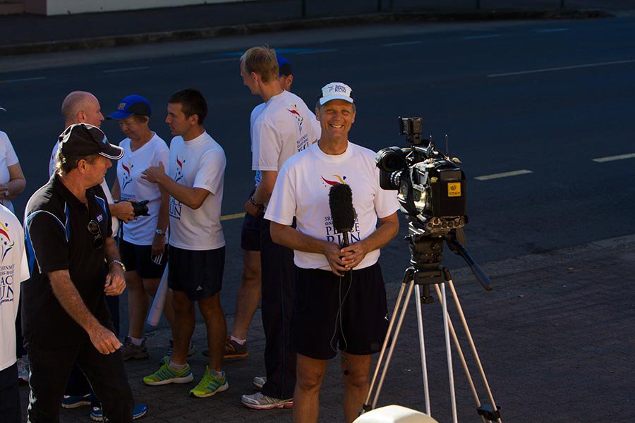 While Mayor Gerard was being interviewed by Dave from WIN TV, he spoke passionately of how inspirational the Peace Run is and how it brings together runners from all ages and backgrounds under one banner of the Peace Run; that the ideal of the Peace Run – that quest for peace and goodwill – is something that everyone understands; and with the strong community that they have in Maryborough and the Fraser Coast area with its inclusiveness, it is something that they could readily connect with.