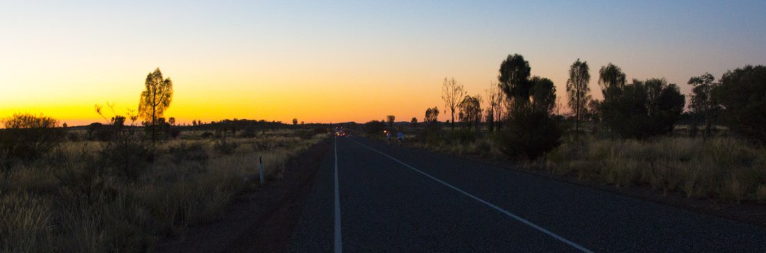 The men's team now brought the Torch the final short 13km into the last light of the day back to the Yulara Resort intersection where we will start bright and early tomorrow. Pranava Gigja (Iceland) leads the way ...