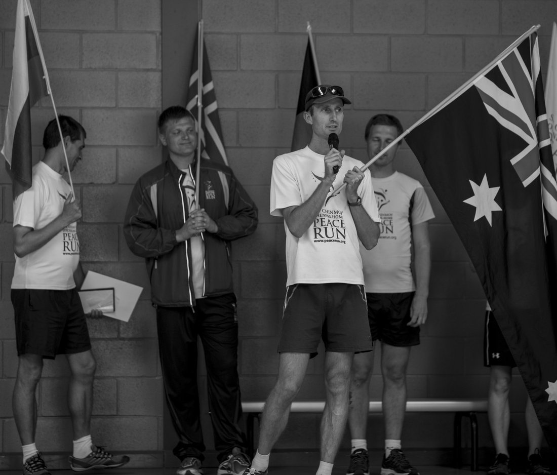 At the possum parade we meet Pete, Kimberly, Lily and Ava Stevens who are from Adelaide, in Renmark preparing for the Half Ironman this weekend. They connected with the Peace Run message straight away.