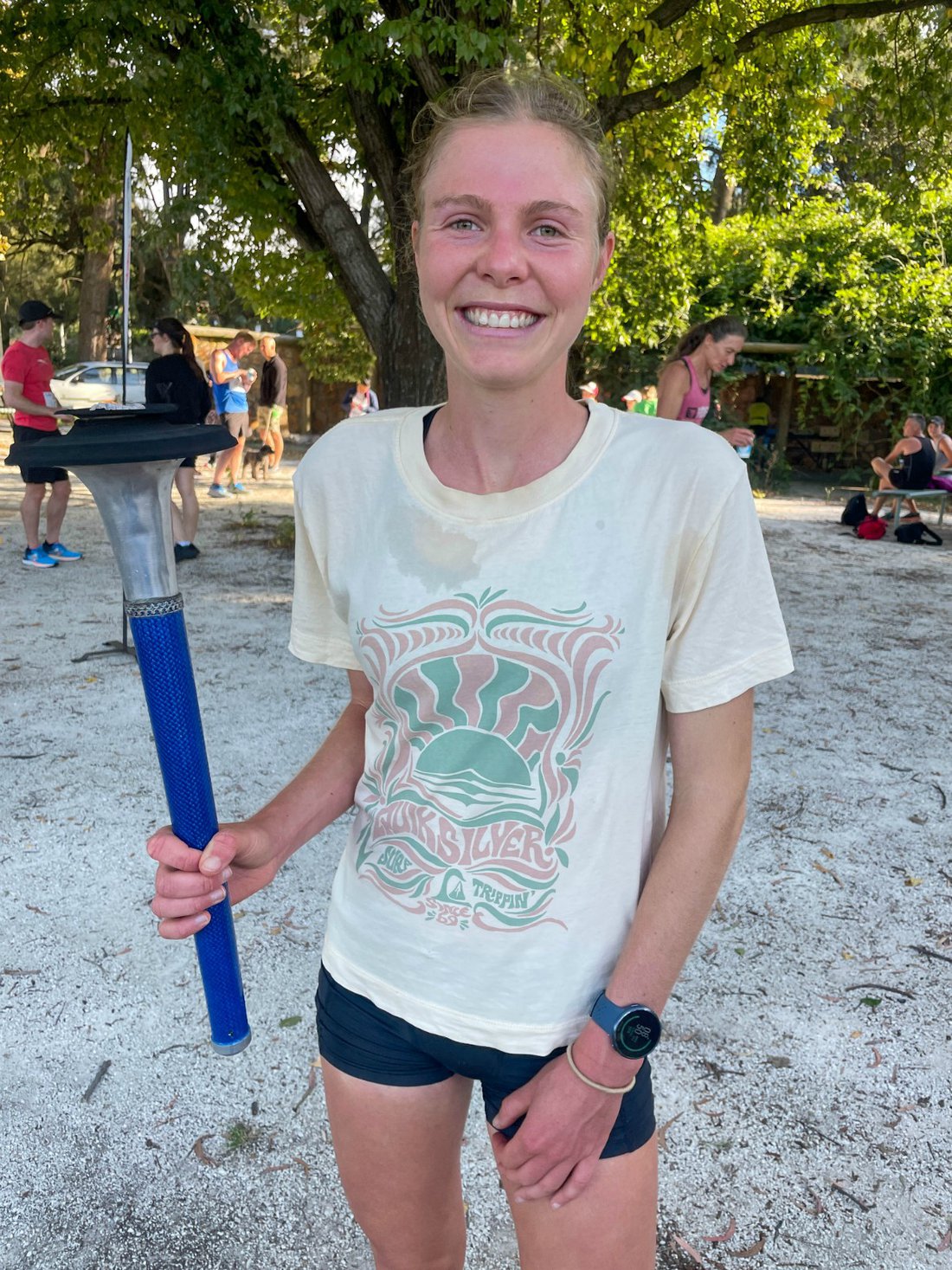 In presenting the award, Susan Marshall said: "I was introduced to Pam when, after the Sri Chinmoy Canberra 100km trail race we both entered was cancelled during Covid, we arranged to run the course together with Andrew Leigh. Pam is considered the Queen of this event, being the only person to have run every edition of this race since 2013, and holding the course records for F50-59 and F60-69.