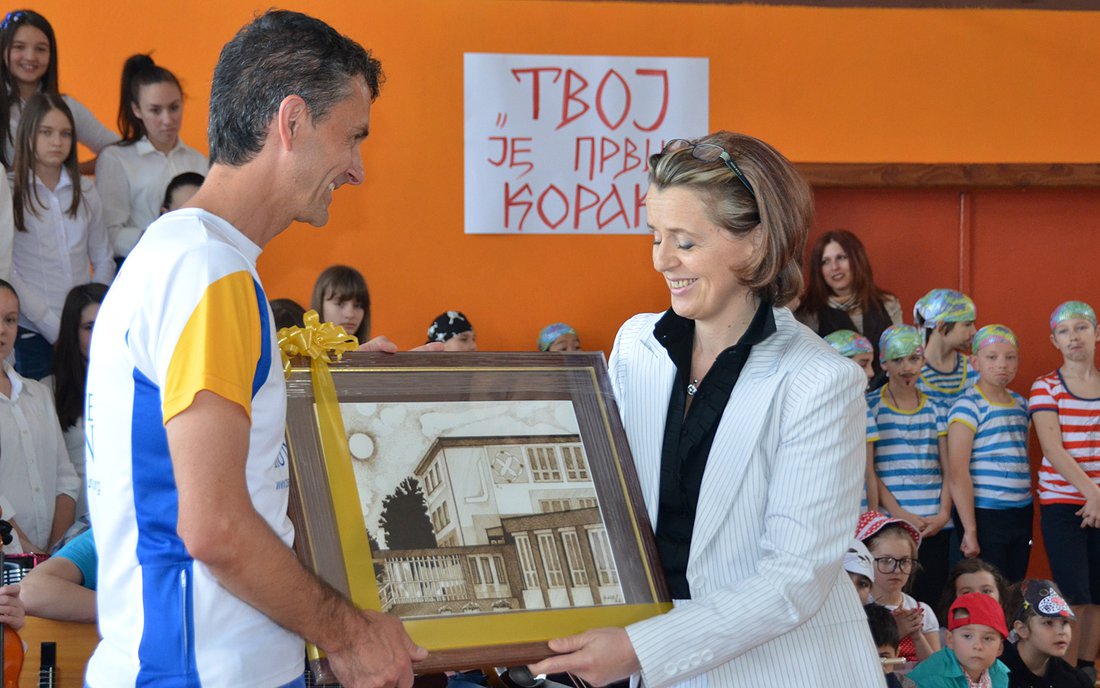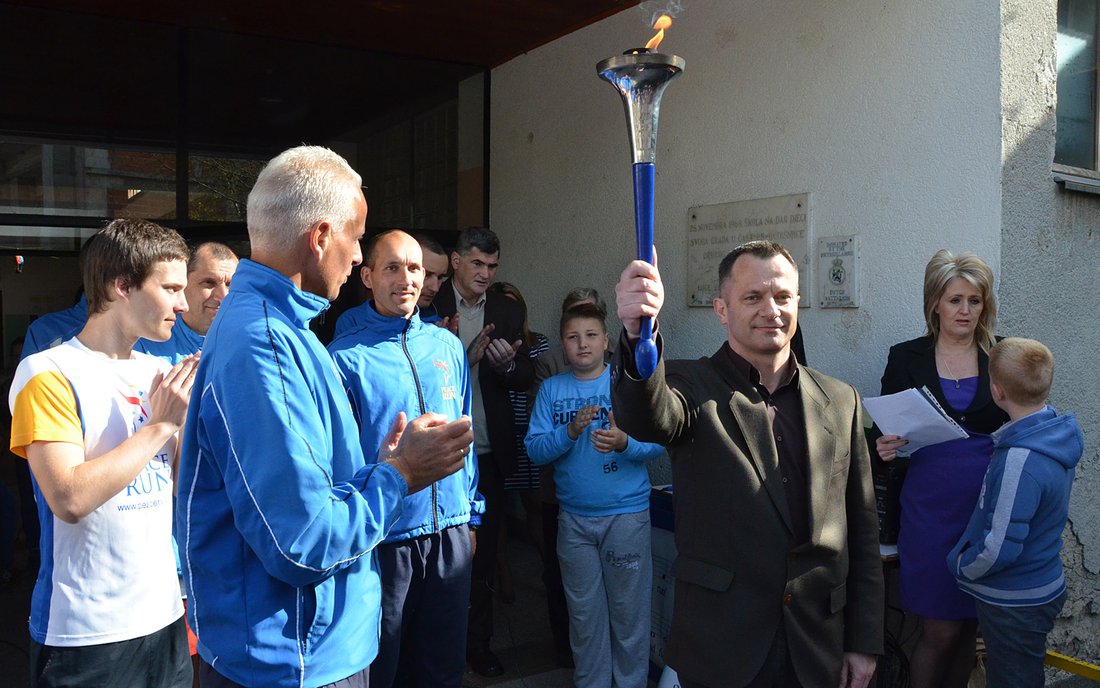 Mrs. Nada Tešanović , Minister for Family and Youth, received the torch and welcomed all the athletes warmly.