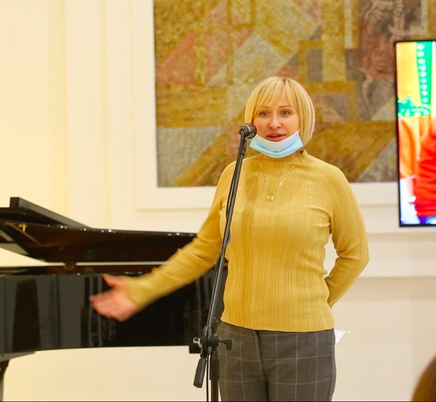 Mrs. Olga Nikolaevna Shirokova, Director of the Russian Cultural Information Center accepted a Certificate of Gratitude and a painting Jharna-Kala. Thank you for your support and for being our hosts!