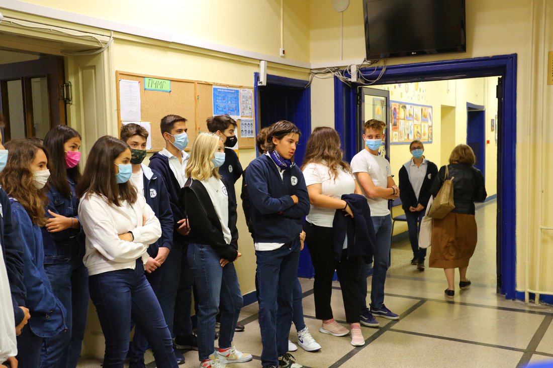 Започнахме рано с посещение на Първа частна математическа гимназия, където едни от най-добрите ученици по математика в столицата ни очакваха, за да си поговорим за идеалите на мира и нашия личен принос.