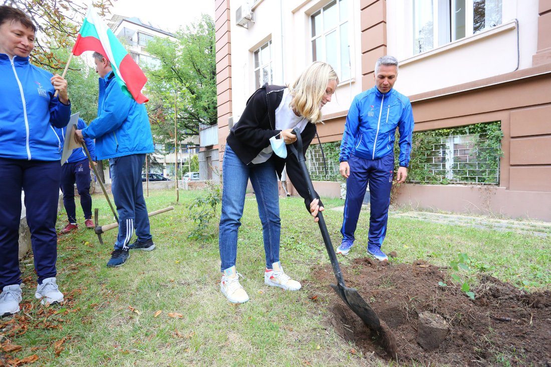 Казаха ни, че дръвчето е 2 годишно и всички очаквахме голямо дърво, а то се оказа крехка фиданка. Засадихме я с много любов и най-искрени пожелания скоро да стане дръвче и да се извиси стройно до останалите.