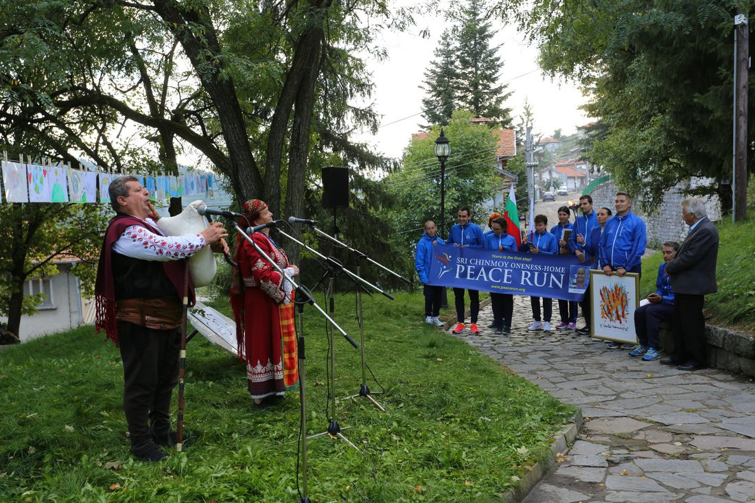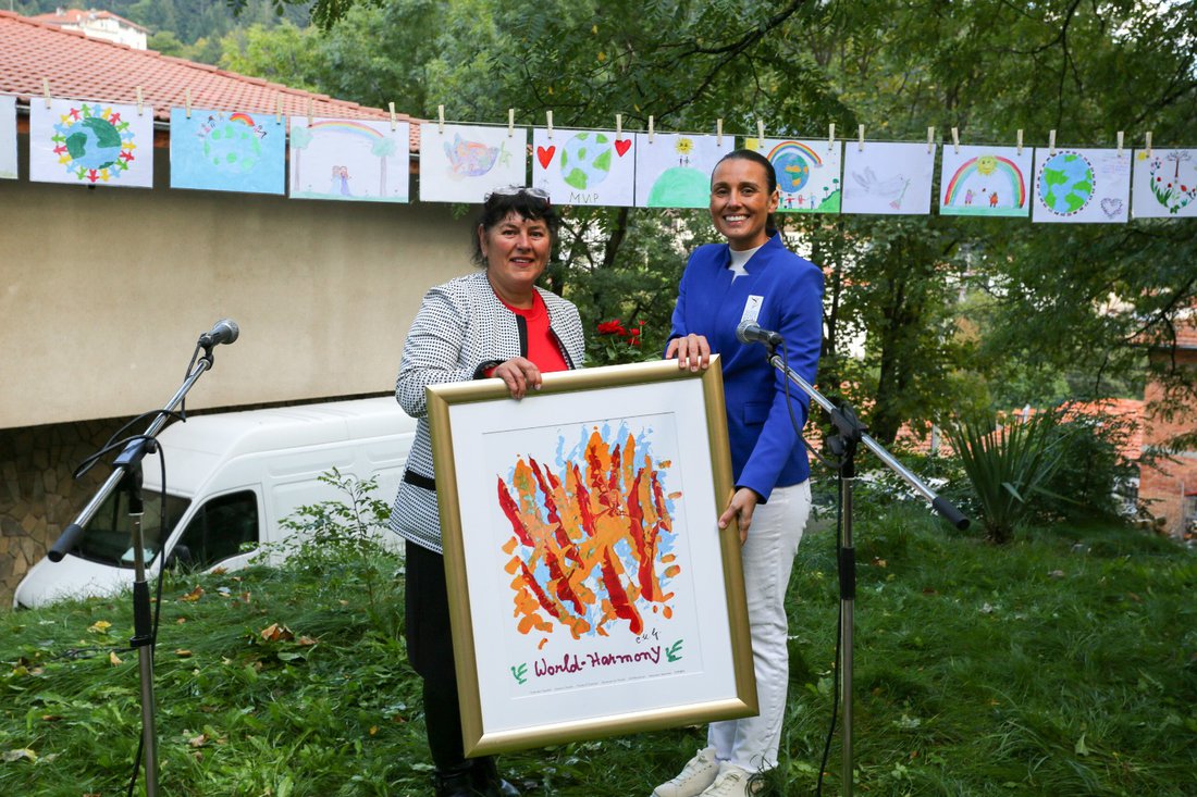Children from the local school had prepared drawings for peace with which there was an outdoor exhibition, they recited poems for peace, and young girls dressed in traditional Bulgarian costumes danced a dance with flowers.
