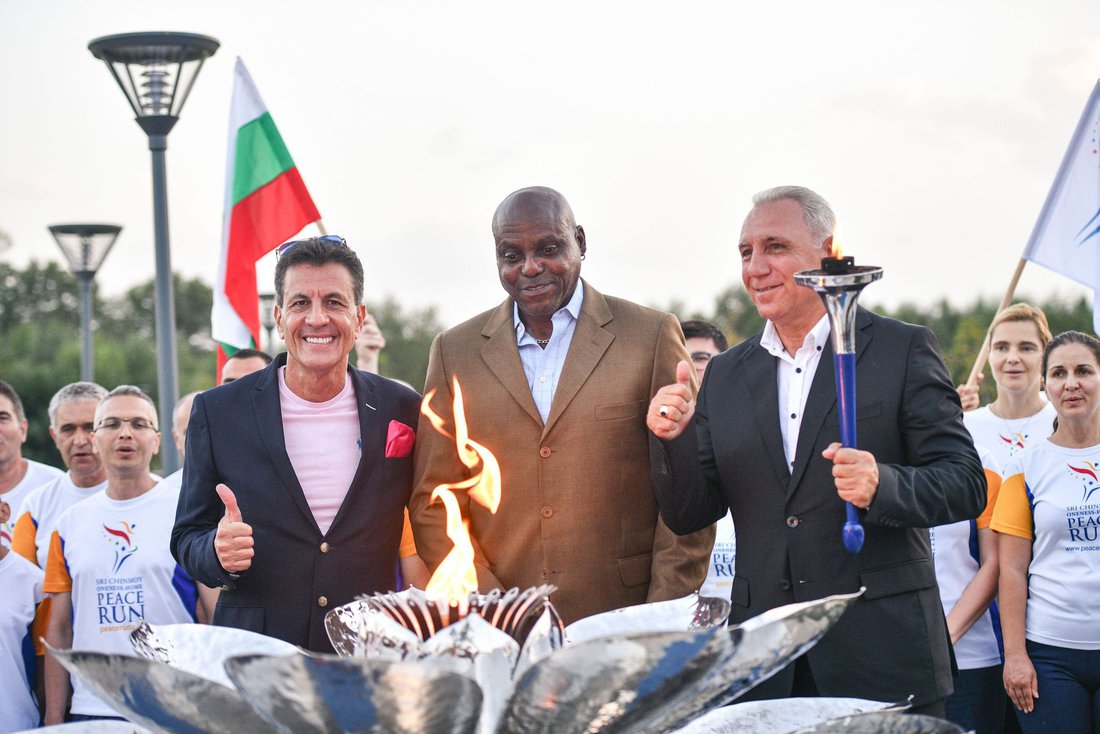 Sudhahota Carl Lewis, Hristo Stoichkov and  the Mayor of Pazardzhik Todor Popov kindled the "Eternal Peace  Flame" in the new-found "Garden of the World" at an official ceremony in park island Svoboda in Pazardzhik.
