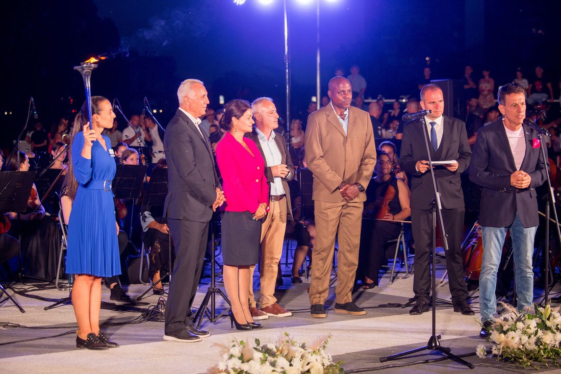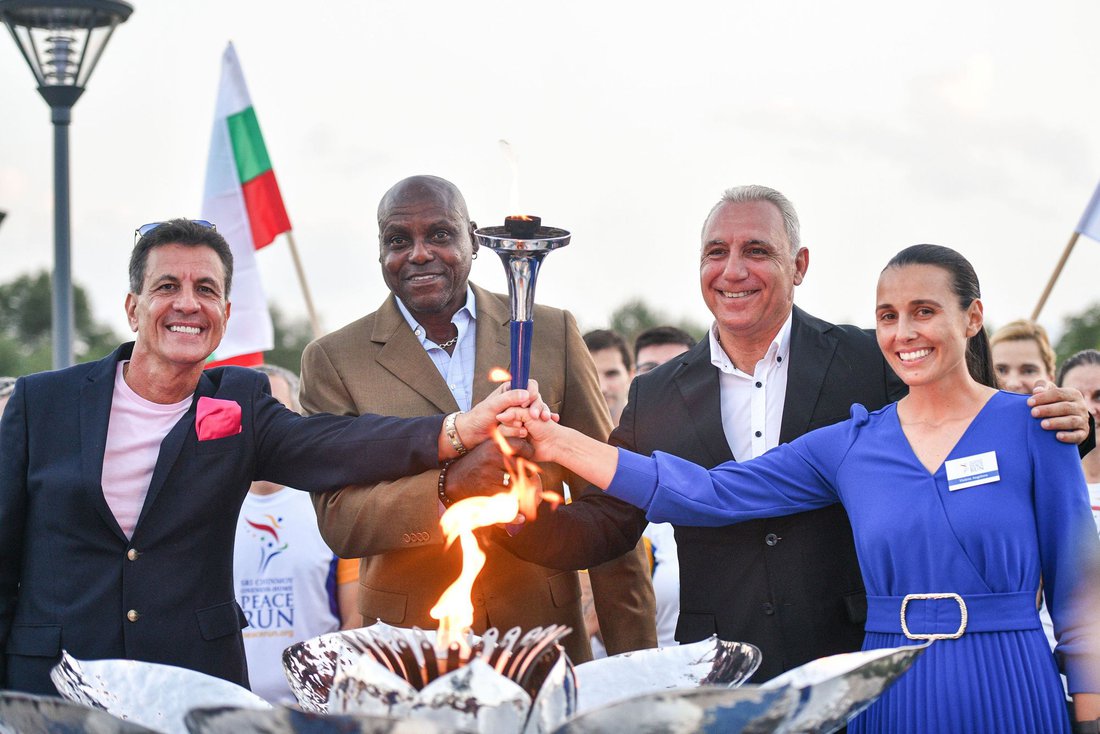 The opening of the evening festive program began with a speech by the Peace Run -  Violeta spoke. On the stage next to her were Mr. Todor Popov - the mayor of the city, the Deputy Chair of the National Assembly Rositsa Kirova, Sudhahota Carl Lewis and Hristo Stoichkov.