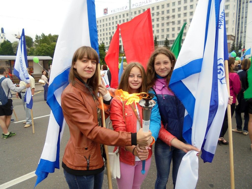Команда эстафеты прибыла на построение для праздничного шествия по улицам г. Витебска в честь дня независимости Белоруссии