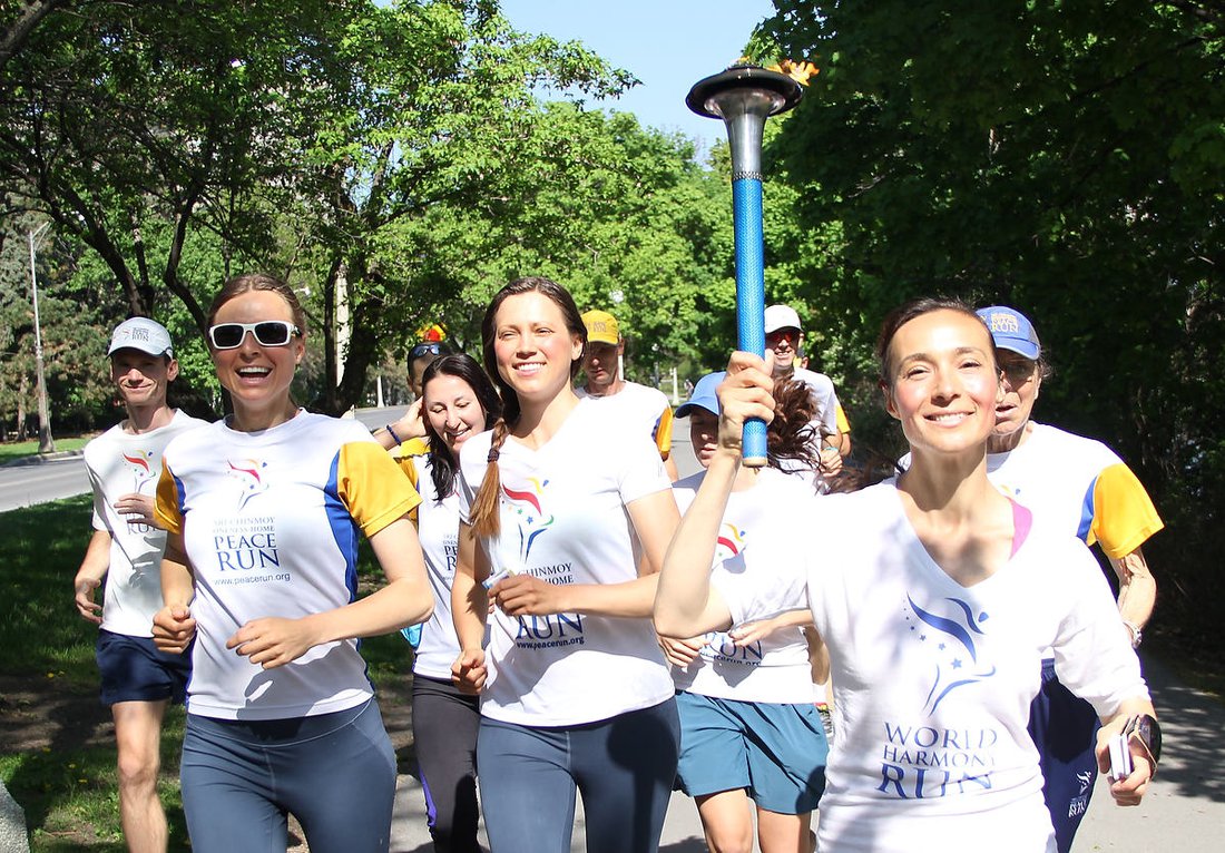 Medur holds the torch with this family from the Ukraine and our Ukranian peace runner, Valerie.