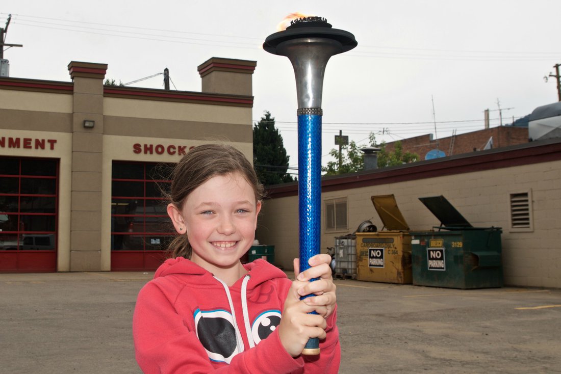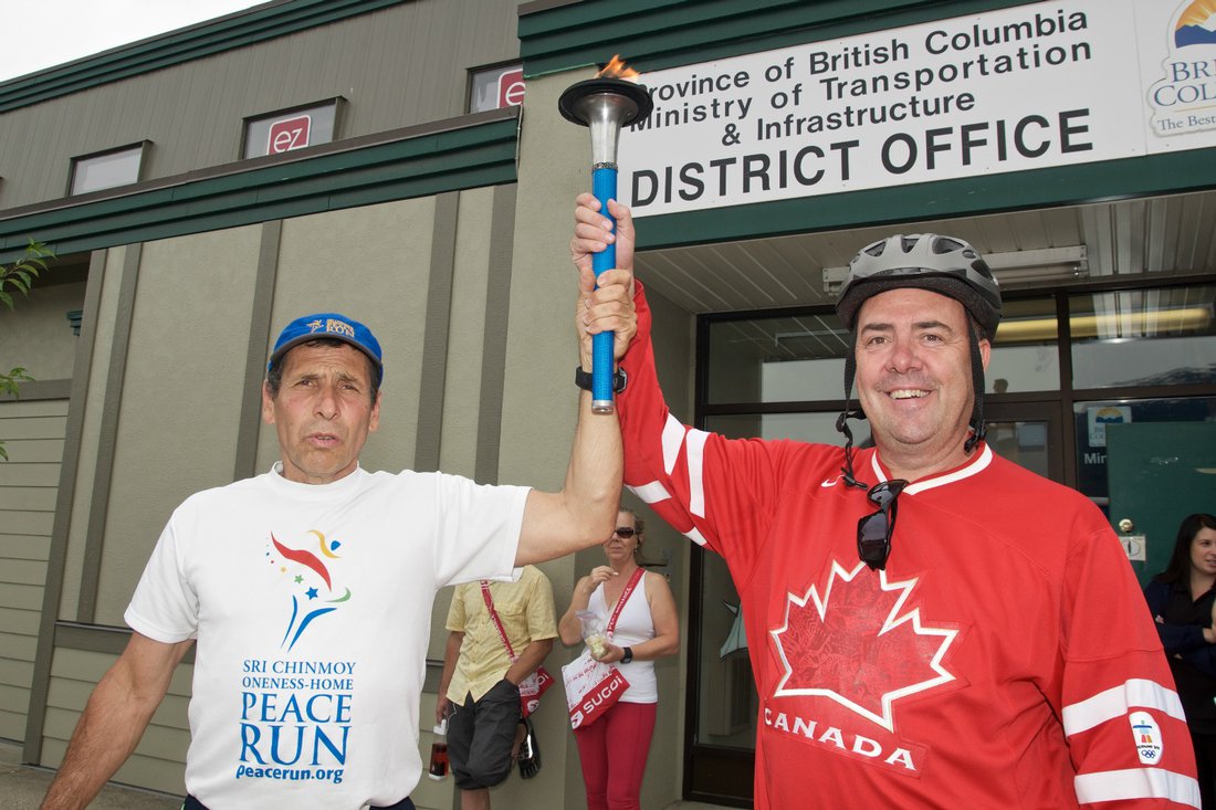 Our team shares the torch with one of the former Mayors of Revelstoke and local medical doctor(in red), and current Mayor Mark McKee, in blue.