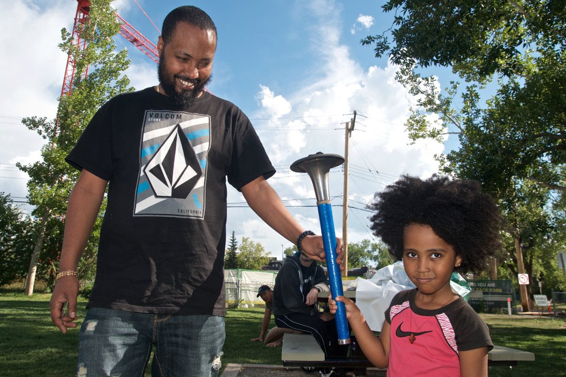 Our official photographer, Yatkara, from Ukraine, enjoys a short run with Mayor Brokker as we leave his beautiful city of Cochrane.