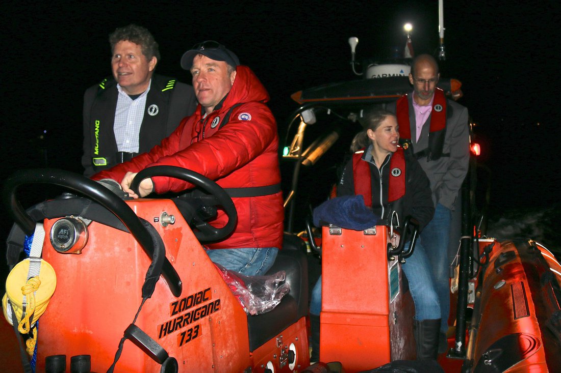 Geoff, pictured with Canada 150 Project Head and Co Workers, skillfully took us back to the dock by Zodiac, weaving through moored boats in the dark.