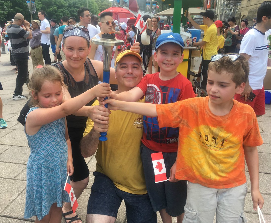 Dans la foule de plus en plus dense près de la Colline Parlementaire, plusieurs familles se réjouissent de porter le Flambeau et de prendre un instant pour penser à la Paix.