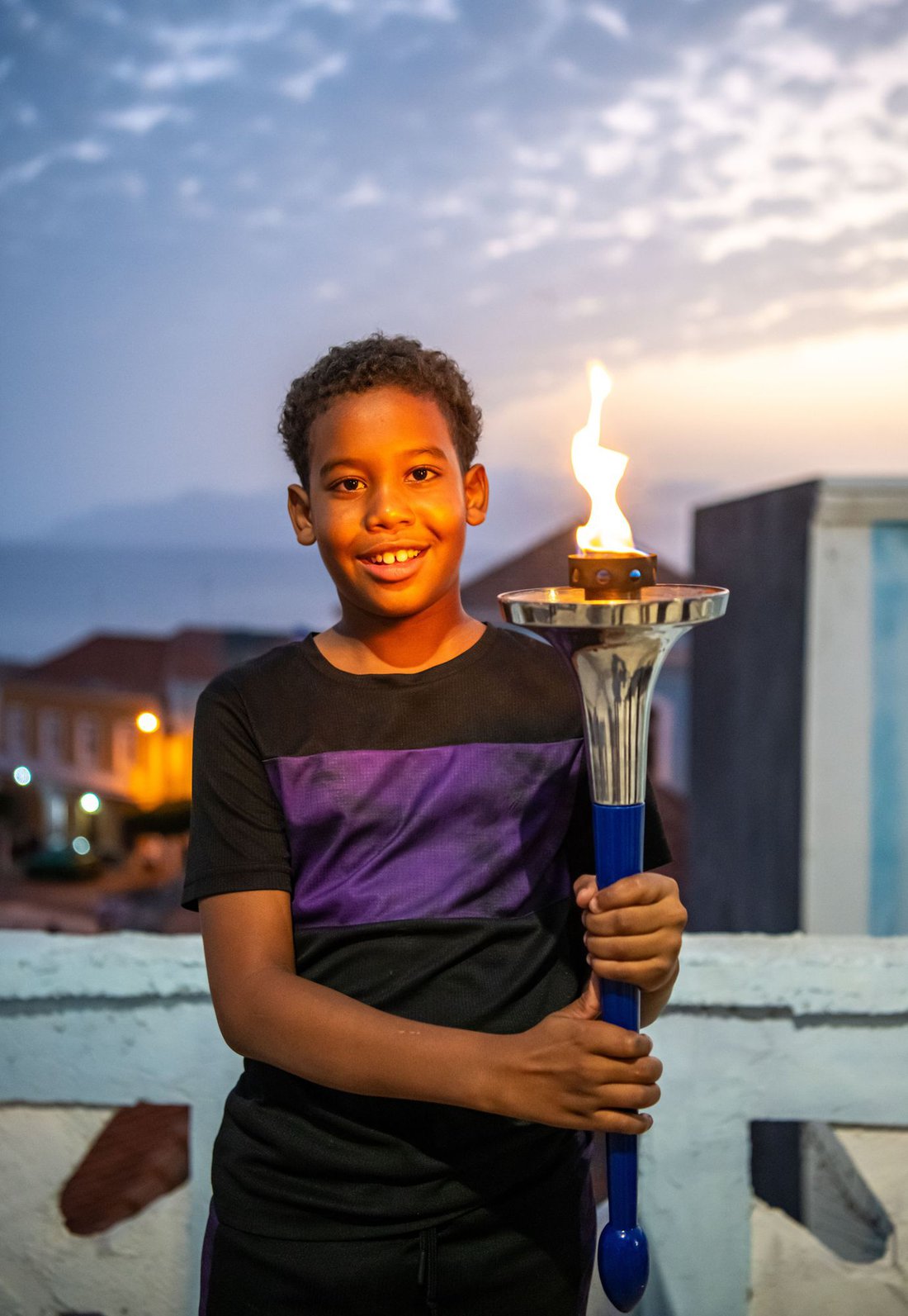 Encontramos na Ilha do Fogo o jogador de futebol da Seleção Nacional e Cabo Verde, Figo (ao centro com a Tocha da Paz)