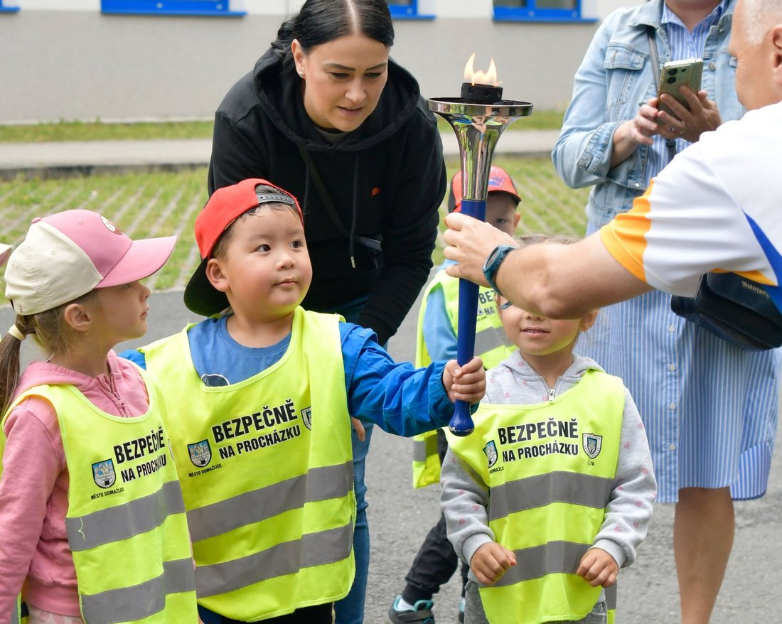 The torch has travelled 16.6 km from Domažlice to Ovčí vrch.
