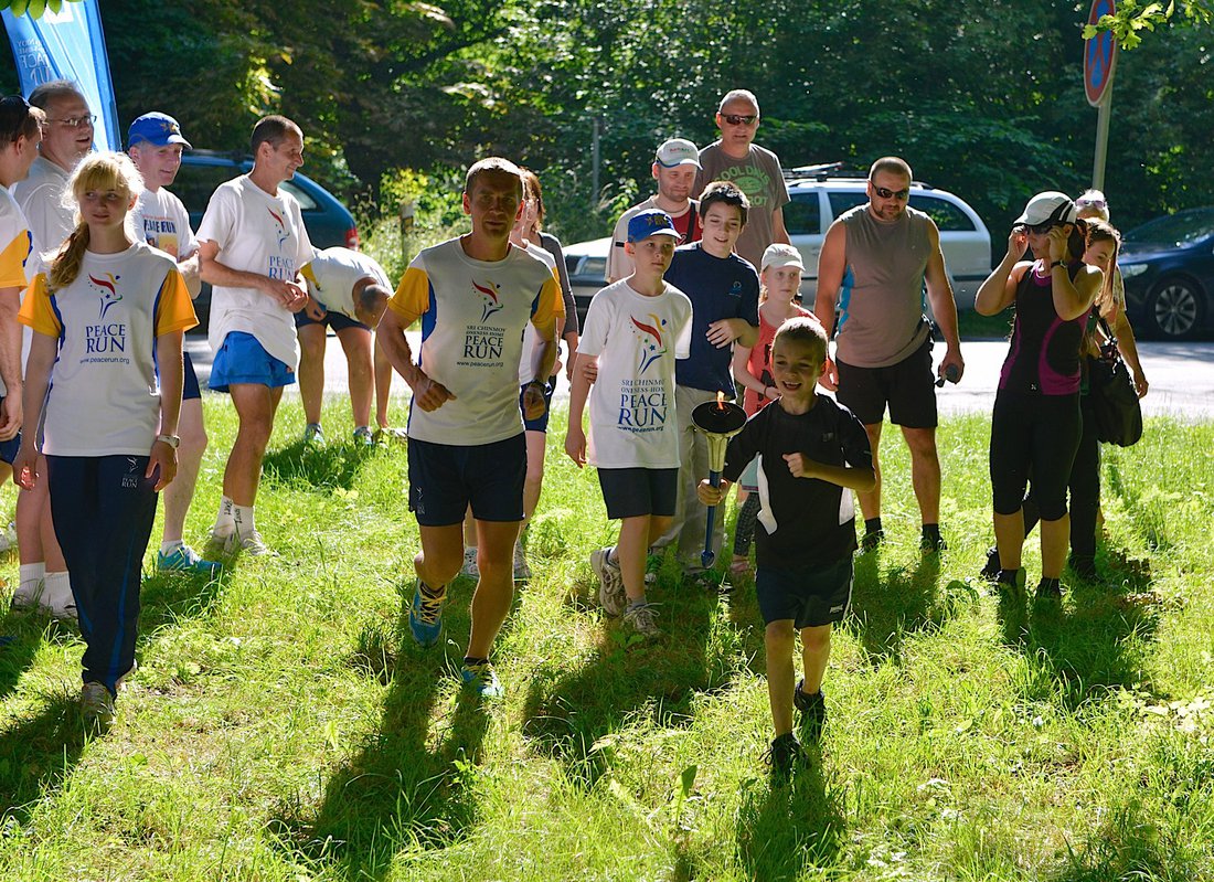 Zde, sportovci ze Sokola Poděbrady se na nás přišli podívat a popoběhnout kousek s pochodní.