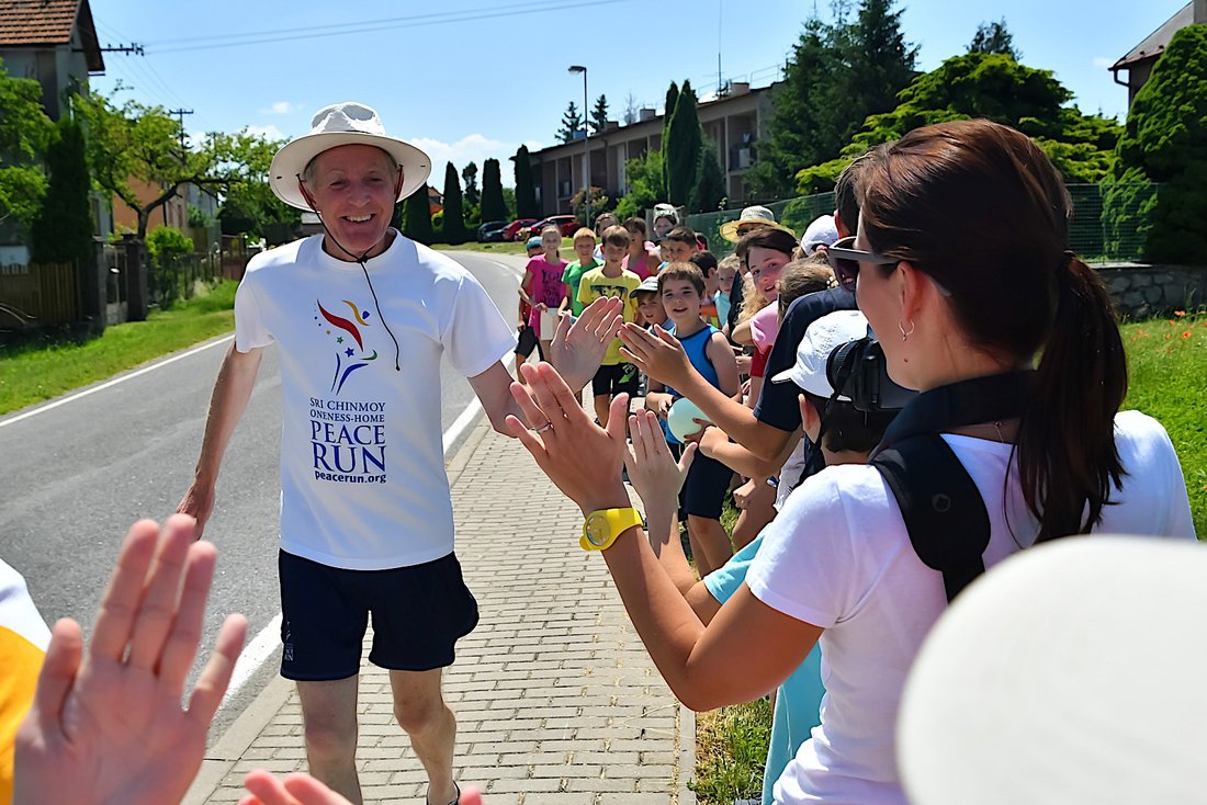 Chlapec v černém tričku znal zeměpis velmi dobře - dokázal rozeznat téměř všechny národnosti Mírových běžců.