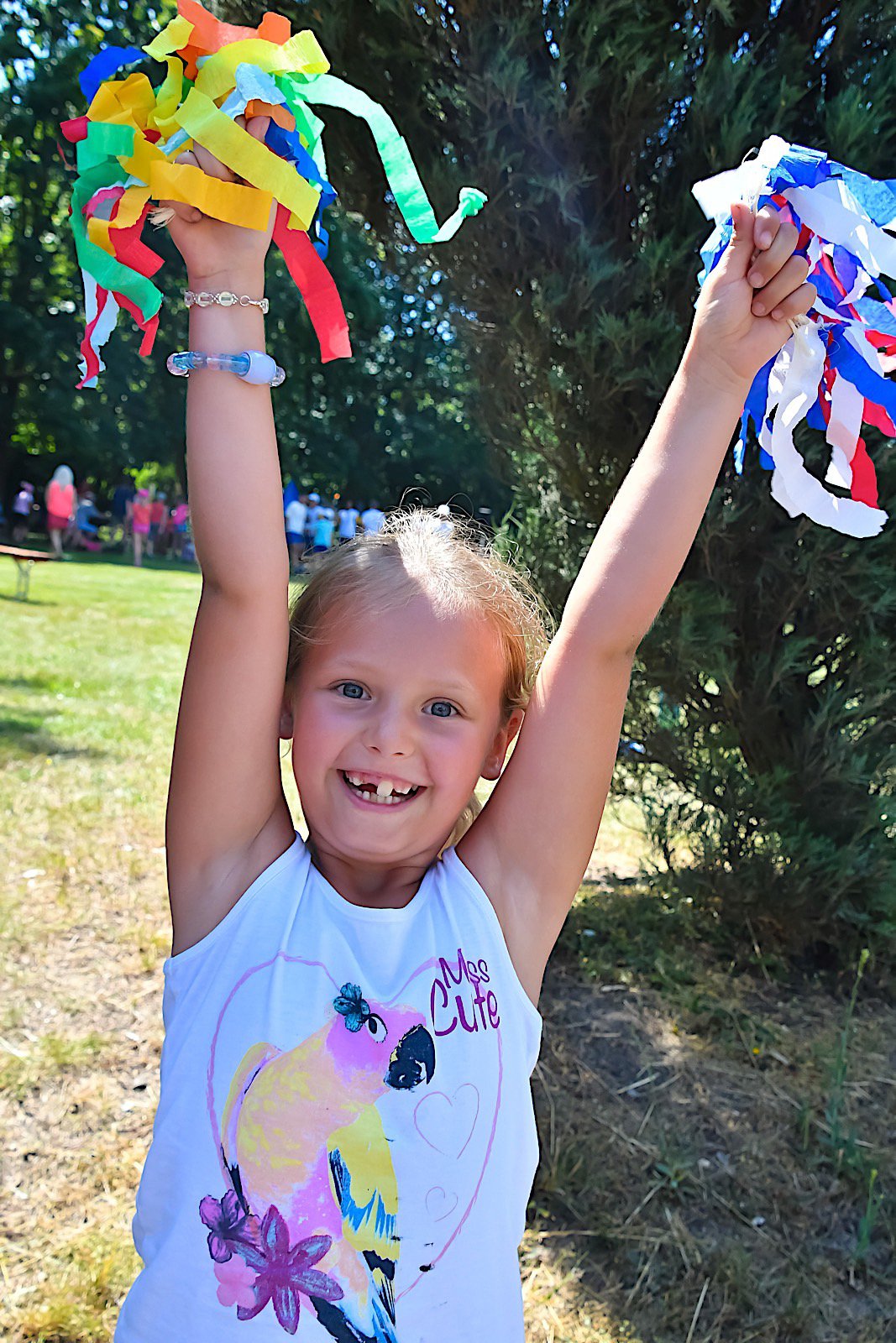 Na ceremonii byly děti s otisky rtěnky na tváři. Nikdo nevěděl proč, ale my se domníváme, že slavily konec školního roku...