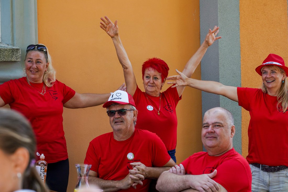 Starostka Hazlova s pochodní a úsměvem na tváři.