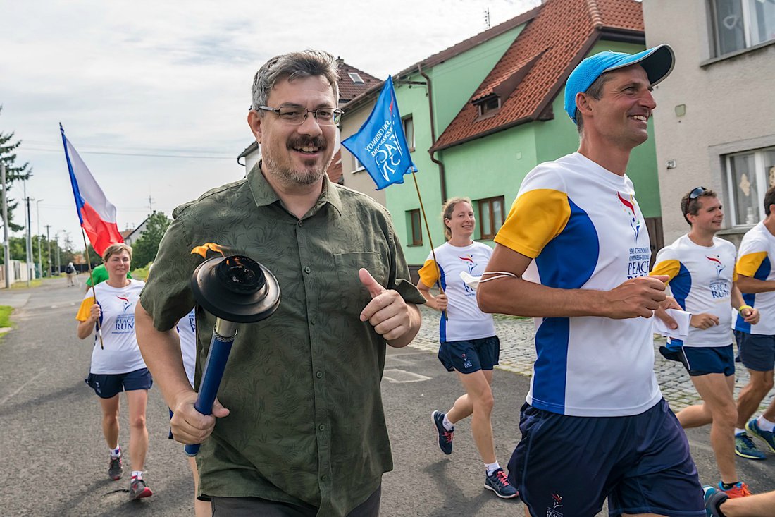 To the main square in Lovosice we ran with a basketball team and Jirka Motl, a famous local handballer.