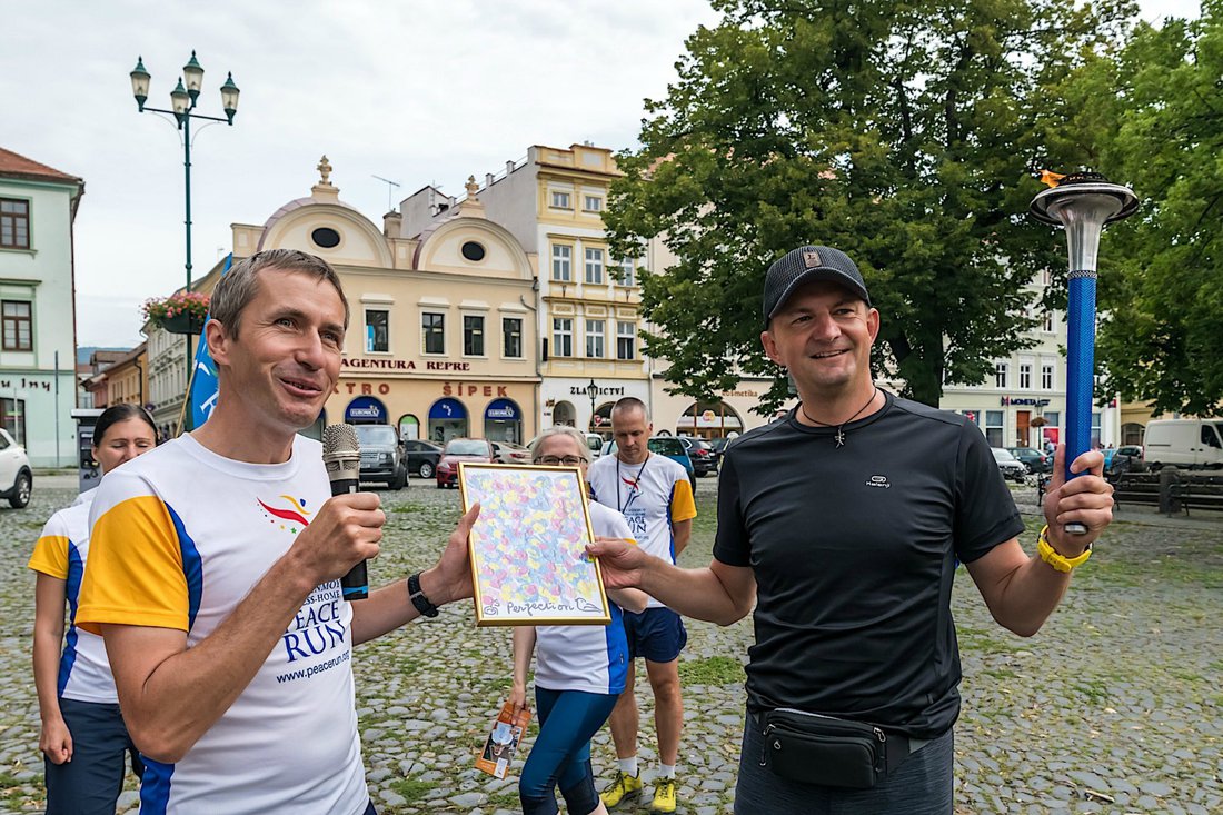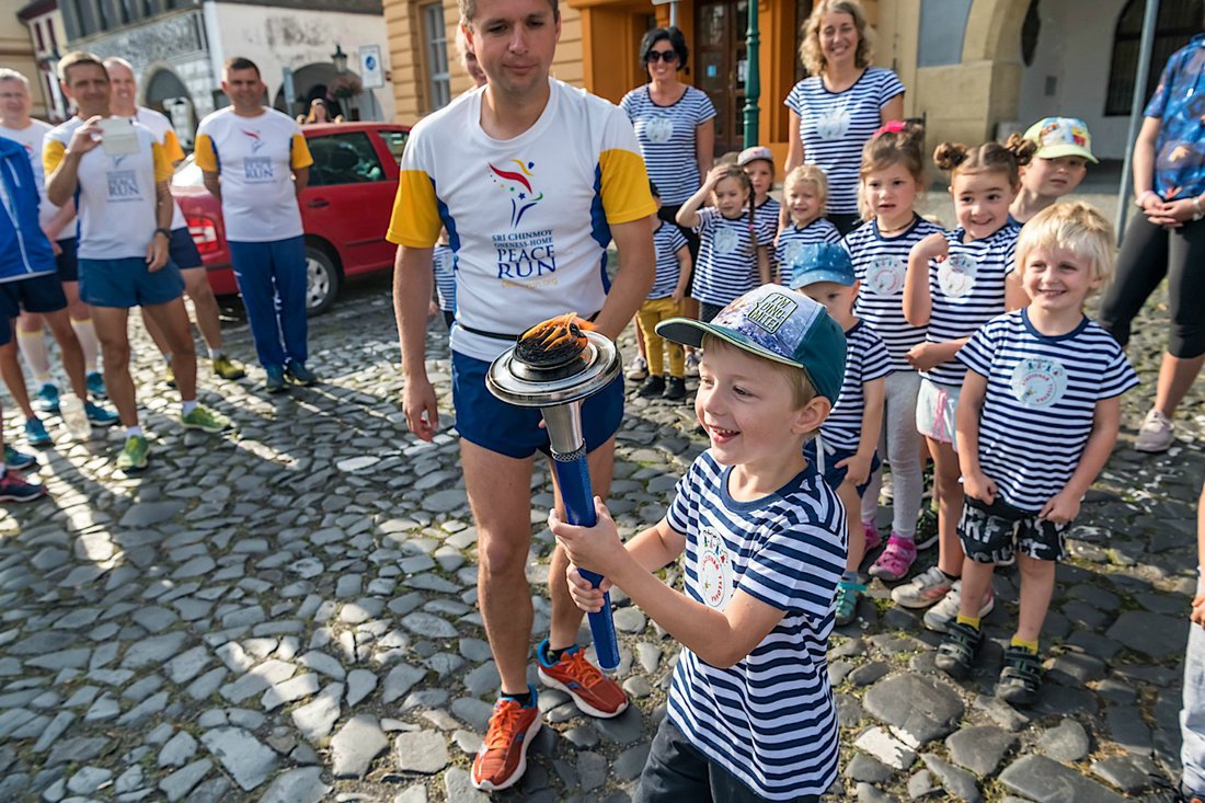 To the main square in Lovosice we ran with a basketball team and Jirka Motl, a famous local handballer.