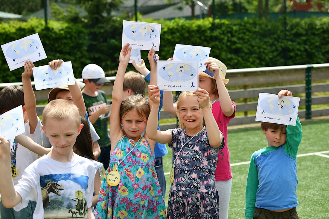 Děti měly za úkol posbírat razítka ze všech částí světadílů do pasu Mírového běhu.