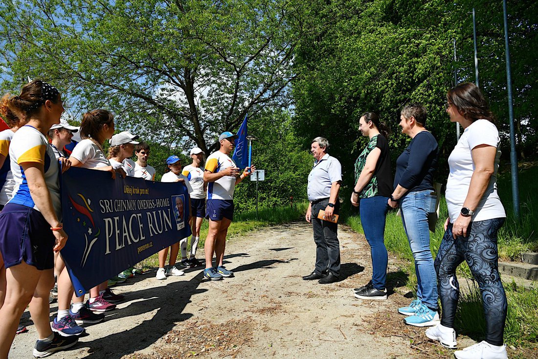 The Czech part Sri Chinmoy Oneness-Home Peace Run 2022 begins! In the morning, runners approached from the Slovak town of Trenčín to the Drietoma - Starý Hrozenkov border crossing.