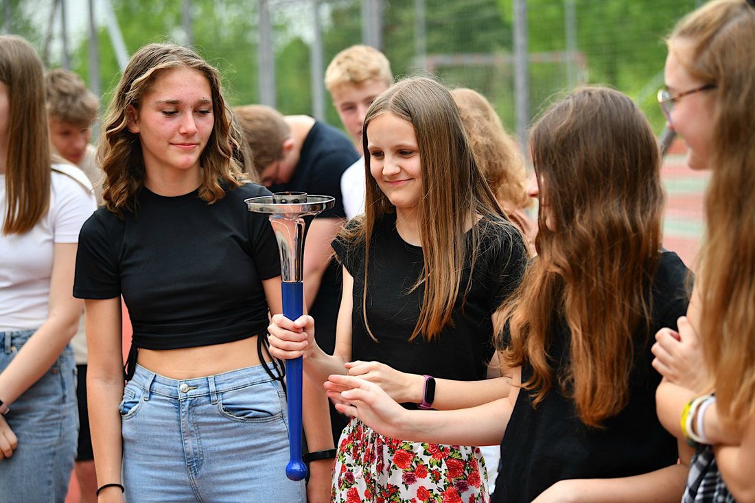 Oficiální předání mírové pochodně zástupci školy.