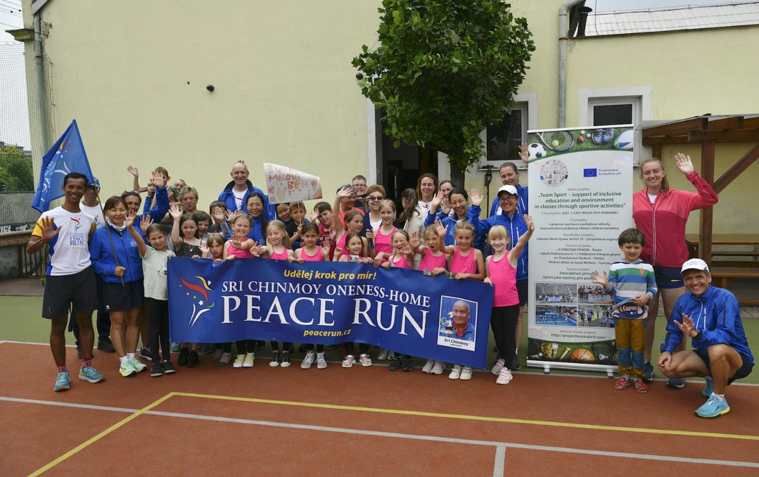 Children from Kravaře Primary School came to meet us and ran with us to their school.
