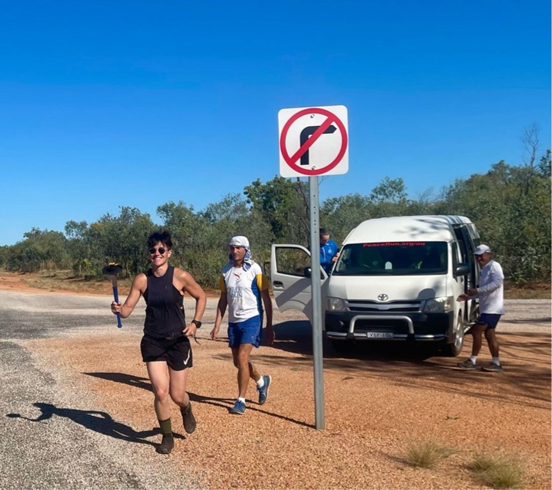 Half of the team enjoyed a unique Peace Run ceremony at Kimberley School of the Air once we arrived in Derby. The school has around 65 students living in remote areas around the territory and several who are traveling around Australia.