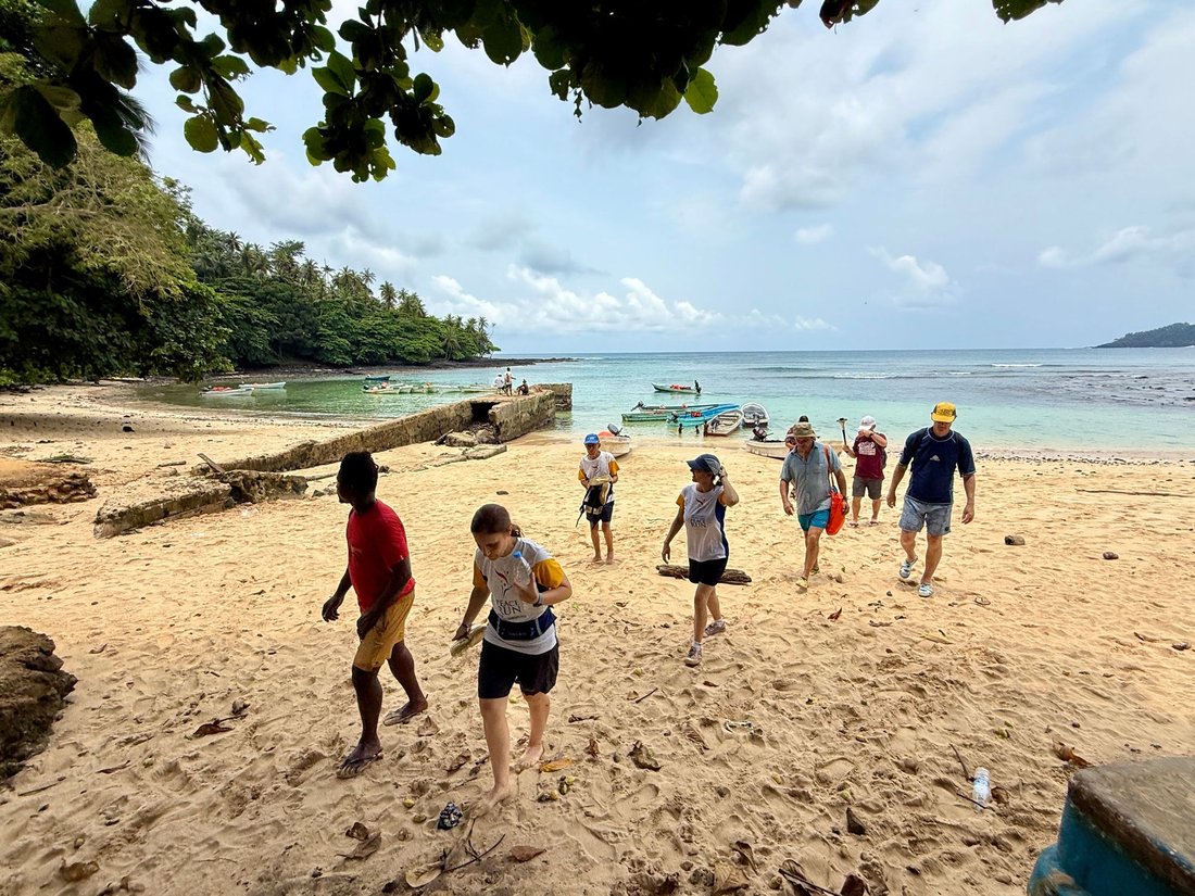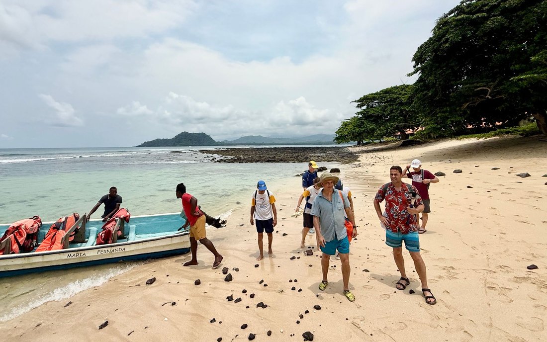 We disembark on Ilhéu das Rolas, home to 200 people, made up of volcanic rocks and tropical vegetation.