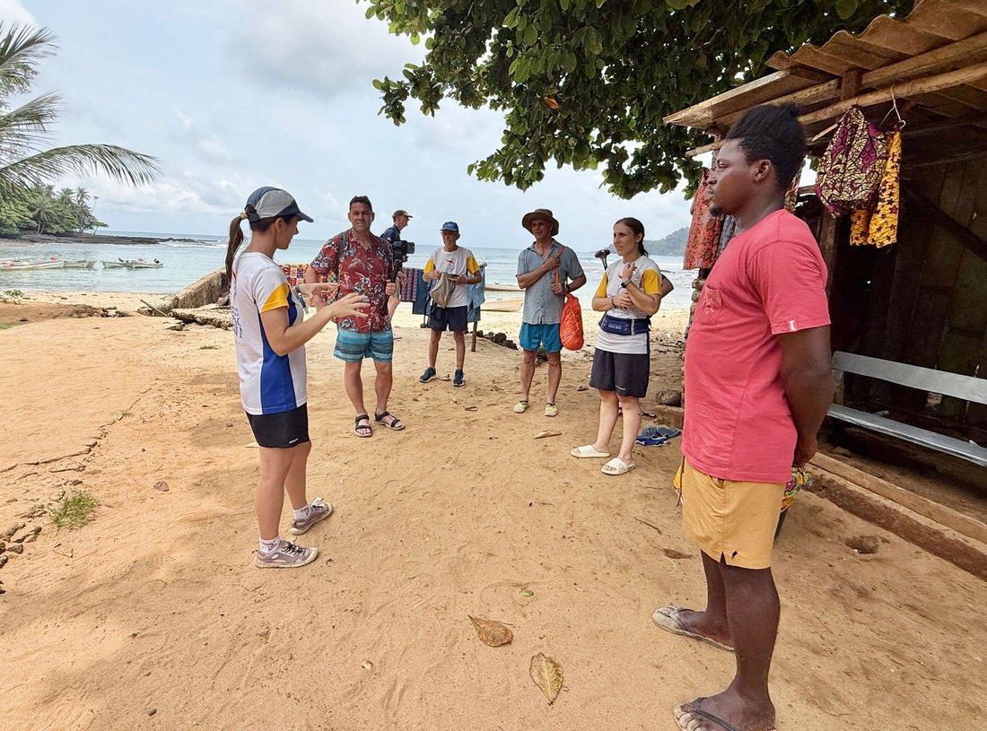 The team speeds up to avoid missing the boat to Ilhéu das Rolas.