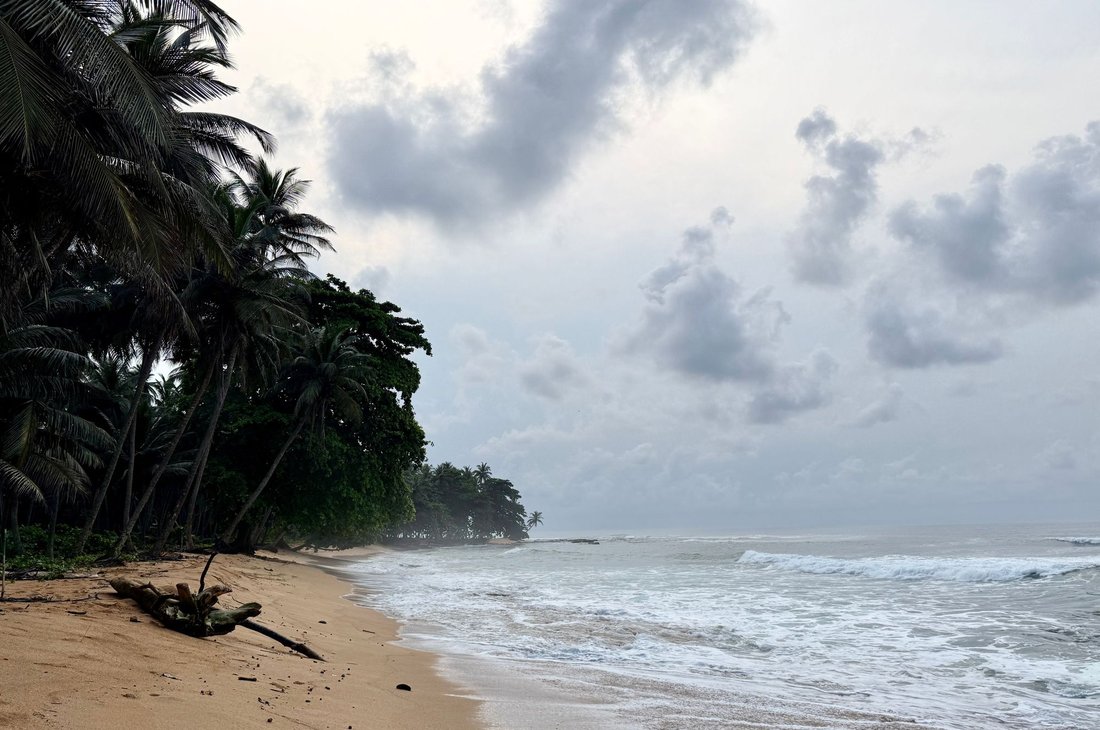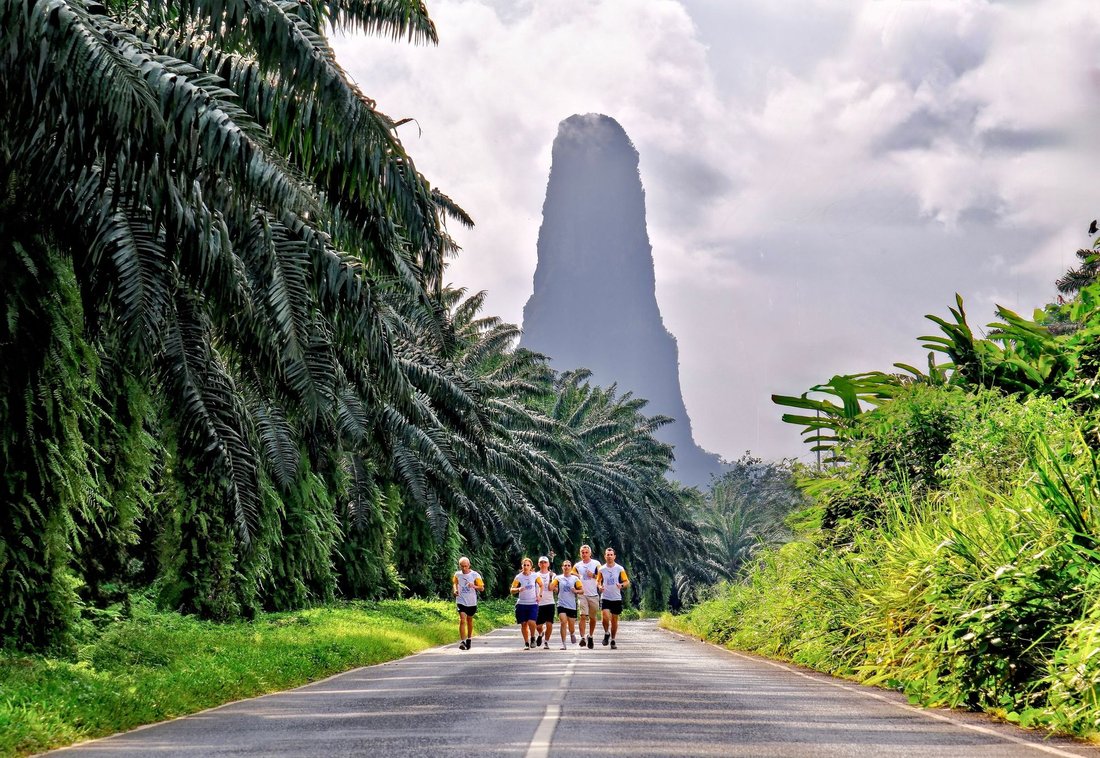 We run towards the town of Porto Alegre, a small village at the southern tip of São Tomé Island, in the Caué district.