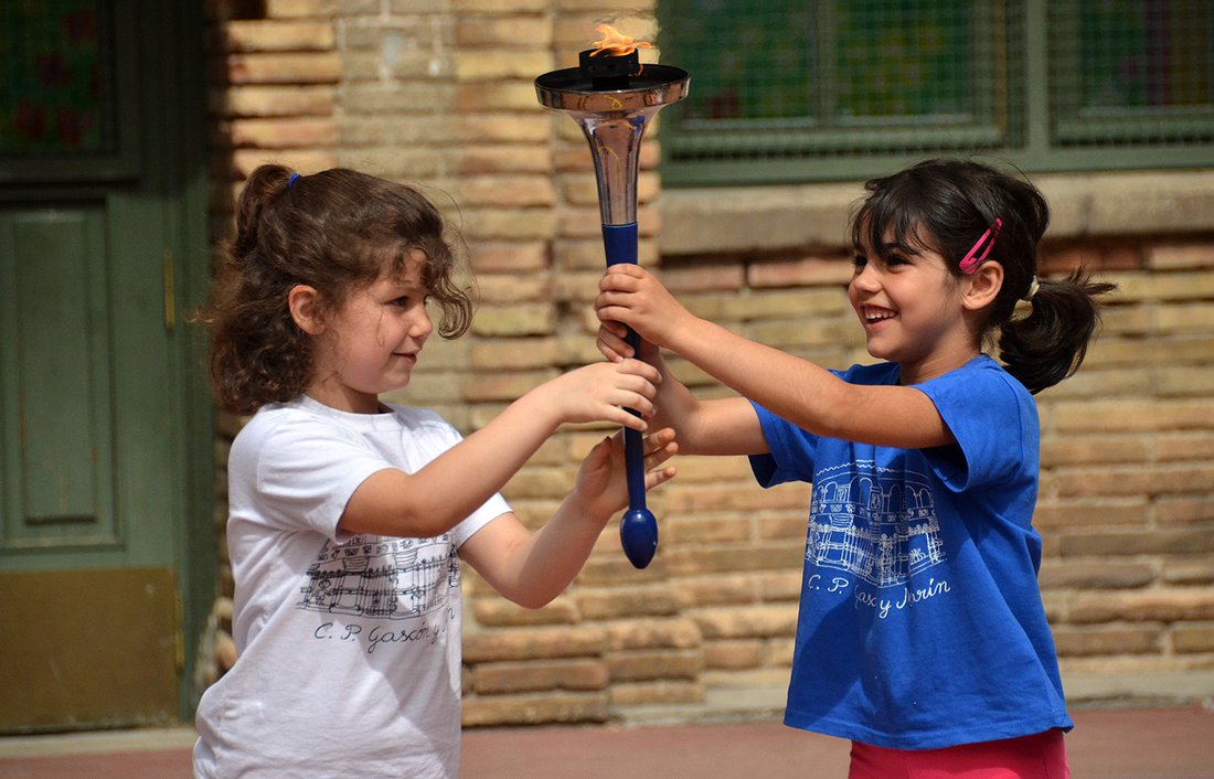 The red shirts are their sports uniform. Students participate in a wide range of sports from Handball to Rhythmic Gymnasics.