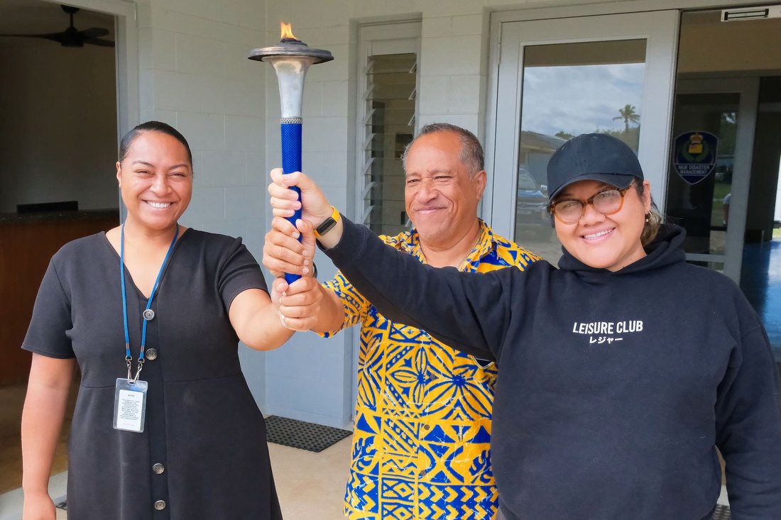 The Peace Torch was run into each village en route and here at Vaiea the team was met by members of the community.