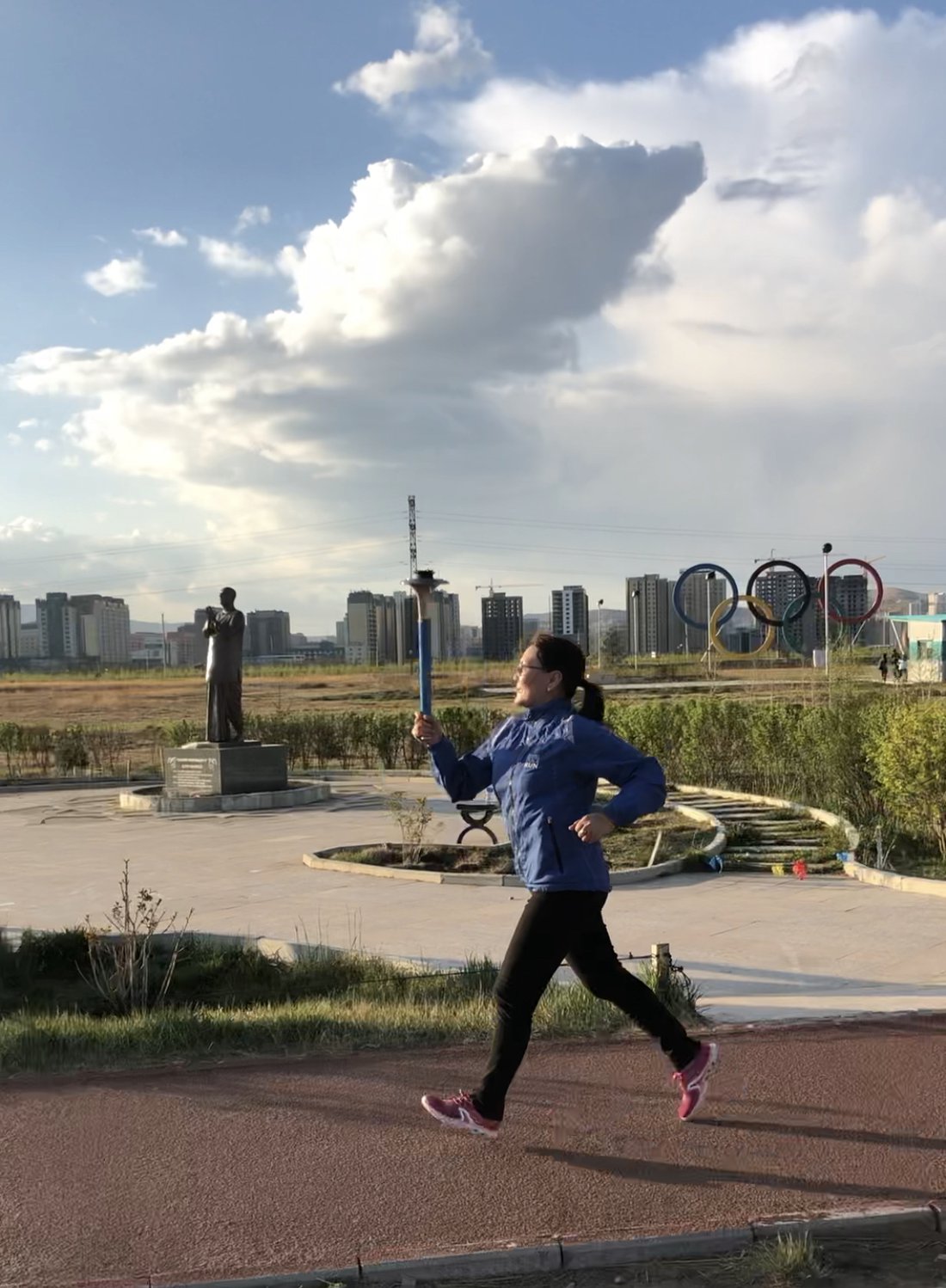 Oyungerel is the other. Their colleague Niyojita reports: "Oyungerel and Vananvat are so happy that they joined the virtual peace run. Especially, yesterday they were very excited when they run with torch. When they lighted the torch they got the same feeling and joy, they had in real peace run. The people around them came to them asked what is happening. They wanted to run with torch. They were all very excited".