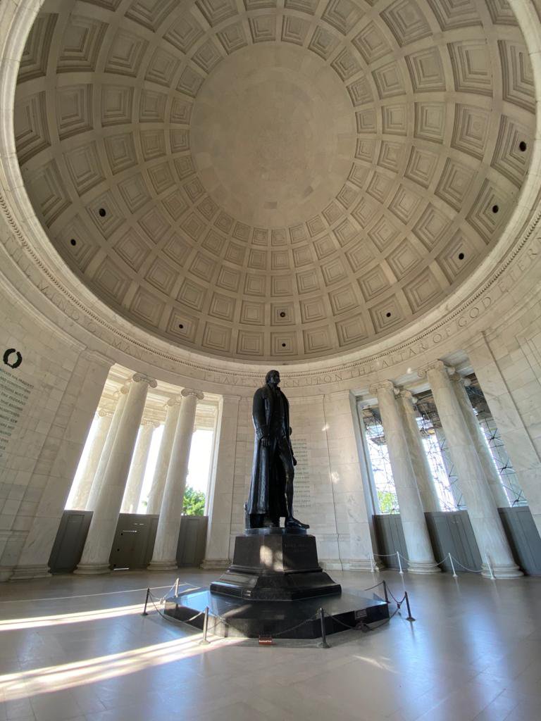 This is the Jefferson Memorial in Washington DC. Executive Director of the Peace Run, Salil Wilson, and Natabara Rollison visited it this past week. They report that it was very peaceful in the capital. They rode around on bikes through quiet streets (several closed off to traffic). Jefferson offered a very powerful vision of Peace in his words enshrined in the Declaration of Independence: "We hold these truths to be self-evident, that all men are created equal, that they are endowed by their Creator with certain unalienable Rights, that among these are Life, Liberty and the pursuit of Happiness".