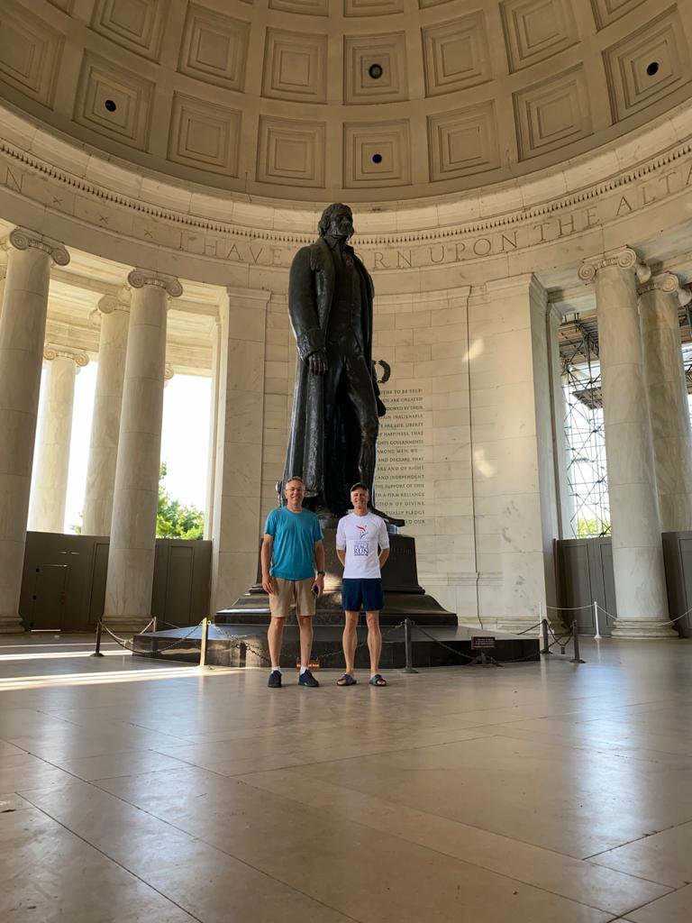 This is the Jefferson Memorial in Washington DC. Executive Director of the Peace Run, Salil Wilson, and Natabara Rollison visited it this past week. They report that it was very peaceful in the capital. They rode around on bikes through quiet streets (several closed off to traffic). Jefferson offered a very powerful vision of Peace in his words enshrined in the Declaration of Independence: "We hold these truths to be self-evident, that all men are created equal, that they are endowed by their Creator with certain unalienable Rights, that among these are Life, Liberty and the pursuit of Happiness".