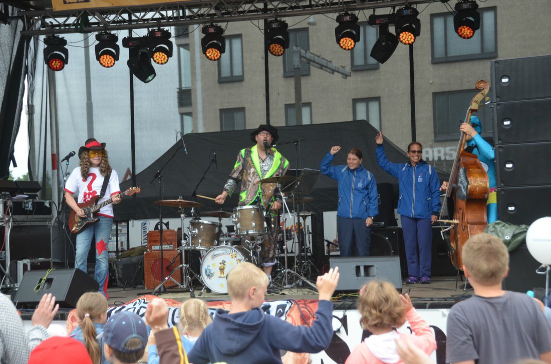 Our next meeting was at the Savonlinna City birthday celebration. We were part of the official programme. The act before us was a Finnish Rock Band for children. As you can see, Palash and Anne managed to crash the performance.