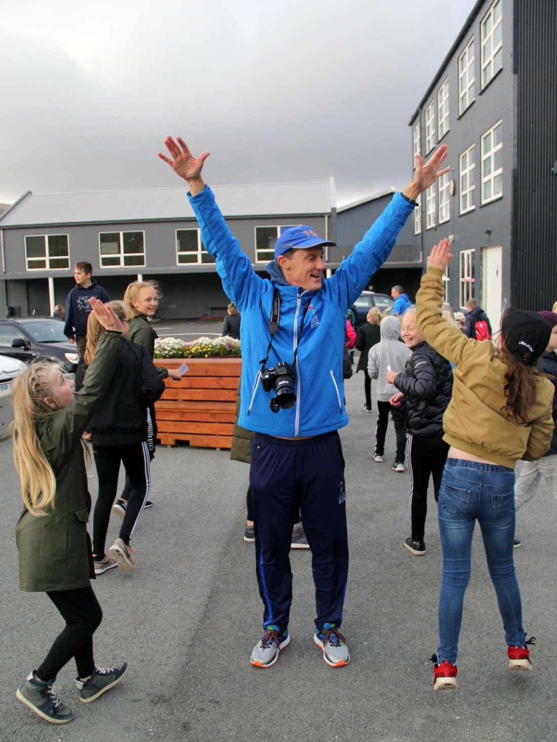 High fives på for at starte en ny dag - på vej ind til Sørvágsskúli